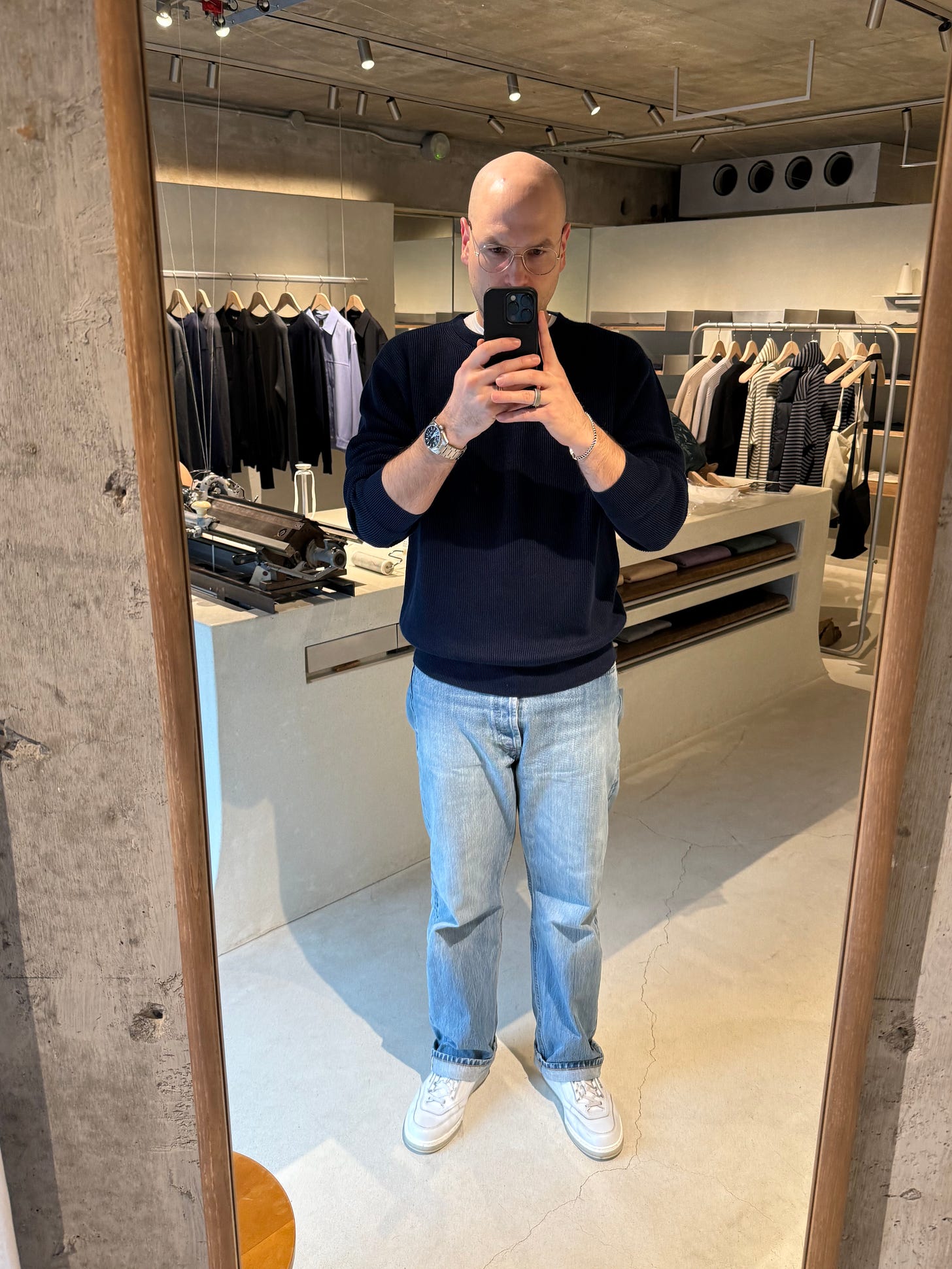 Mill Shirt - Yeah, well, I didn’t anticipate ever getting into Alex Mill either, but here we are. I visited their store the other day and was highly impressed with everything I saw. FWIW, I sized up and got this in a LARGE. It’s perfect for underneath a slubby sweater.